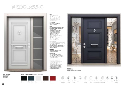 Dış Cephe İçin Uygundur  Darbeye Dayanır  Eğilmeye Dayanır  Neme Dayanıklıdır  Dayanıklı Ön Zırh  Ayarlı Menteşe  Ses İzolasyonu  Isı Izolasyonu  Çevre Dostu  E60, EI2 45  Çizilmeye Karşı